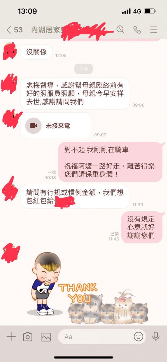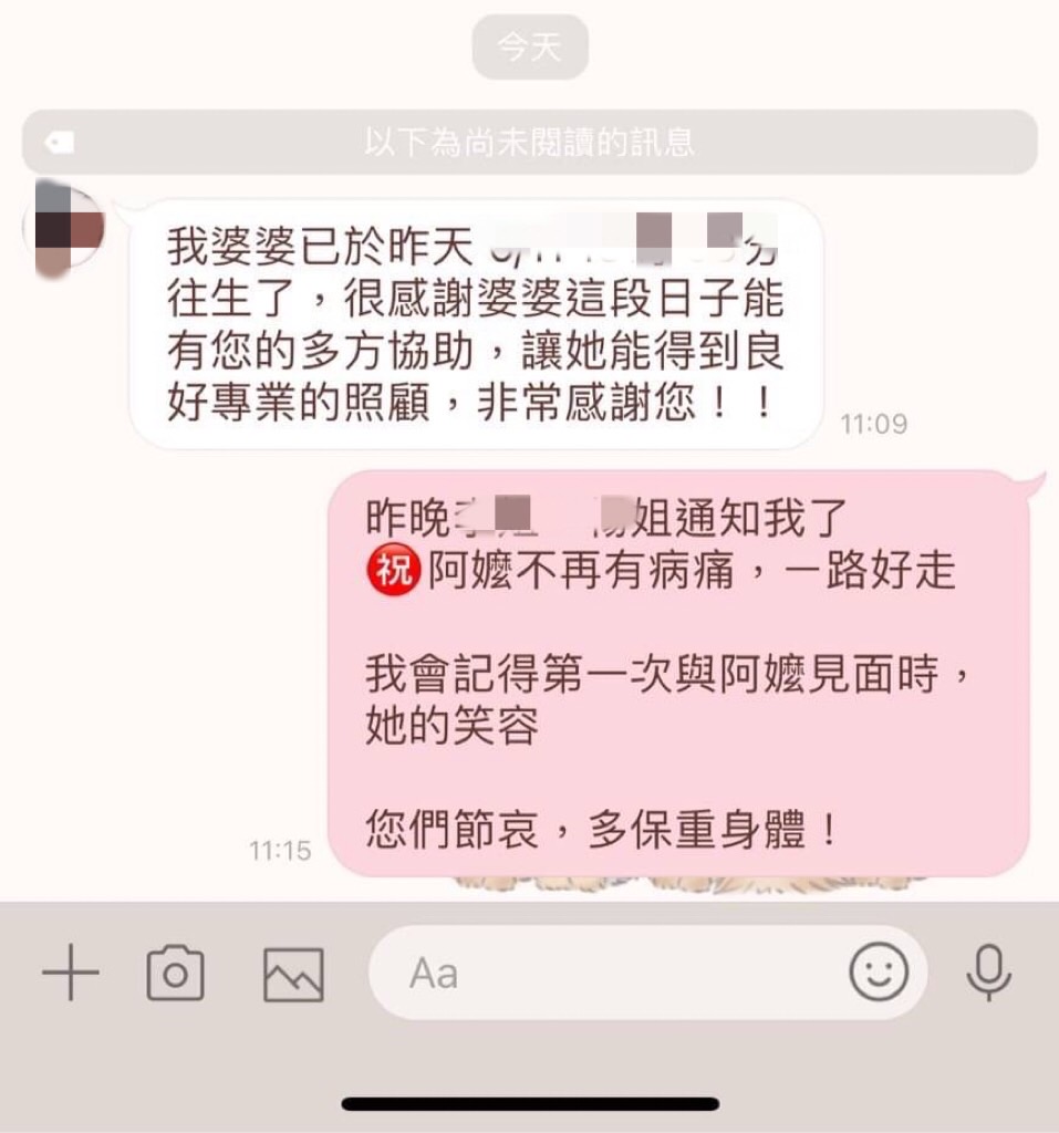 看護執行臨終照顧,家屬感恩點滴在心頭。