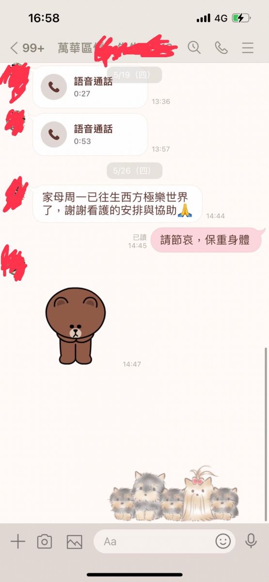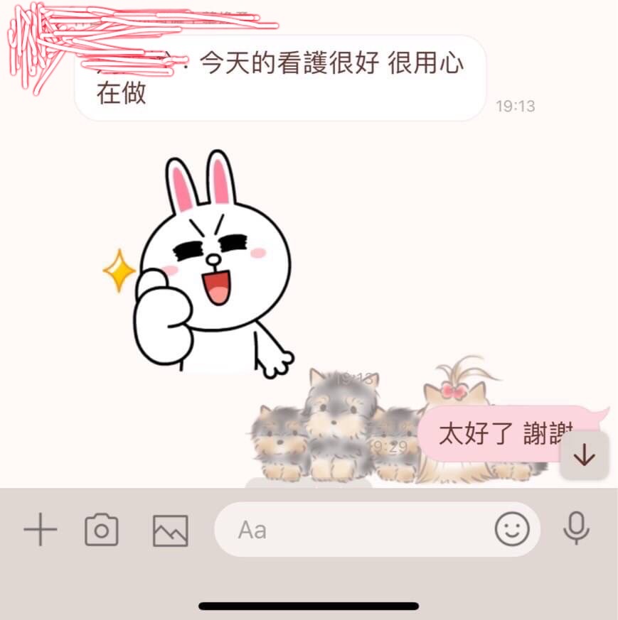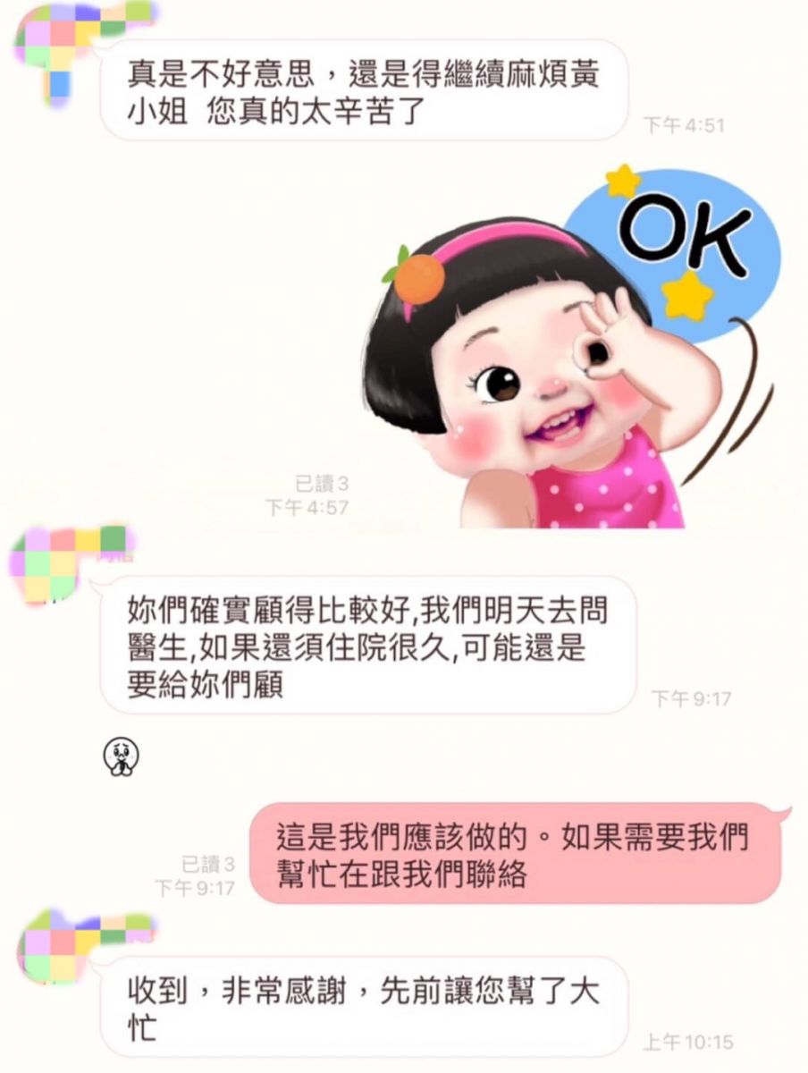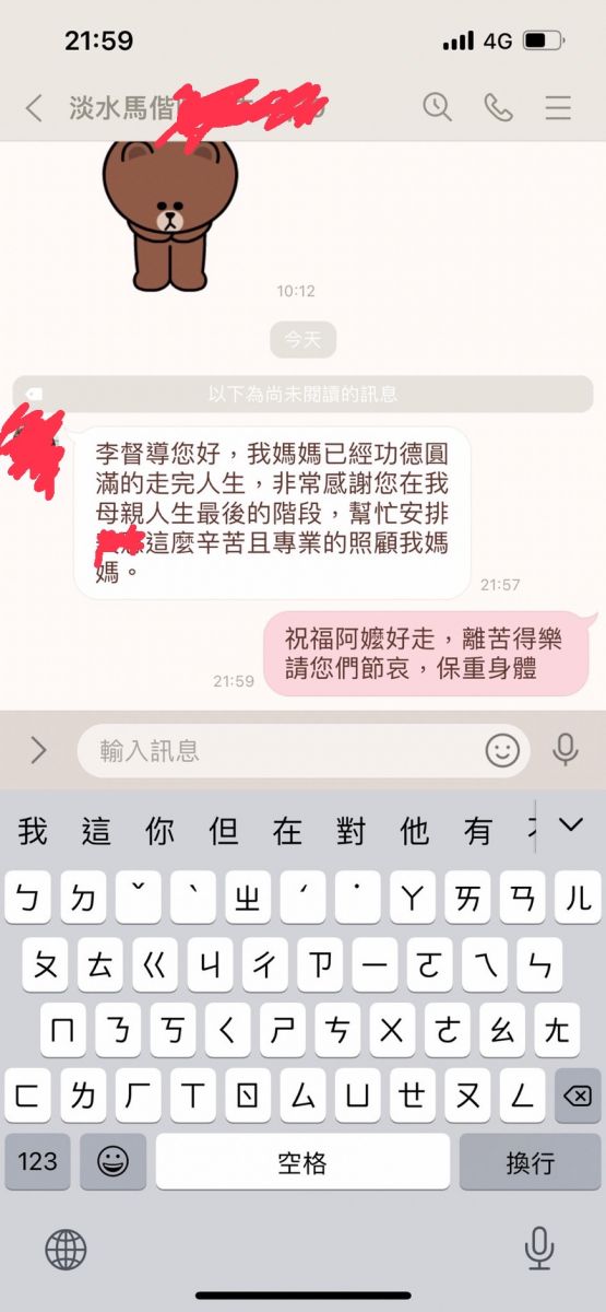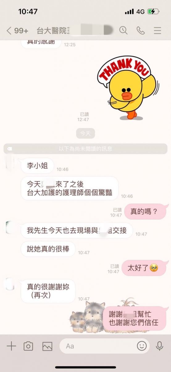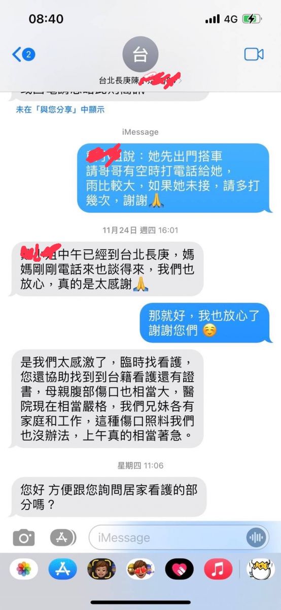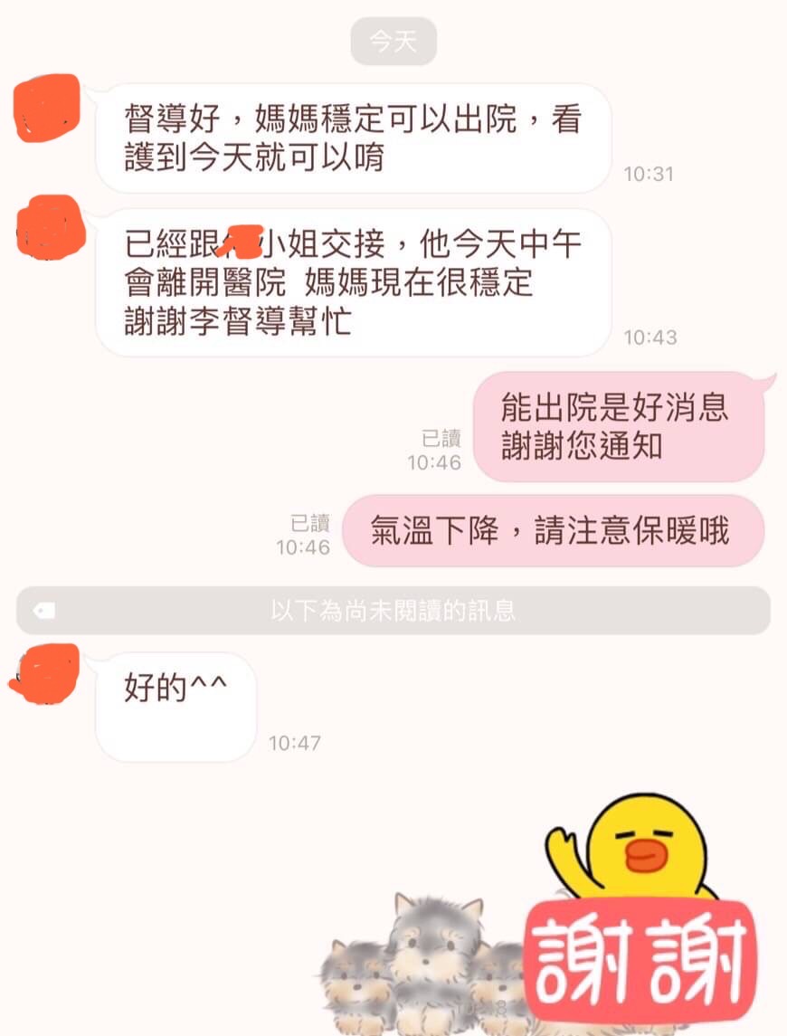 看護人員細心跟家屬回報狀況,照顧就是責任。