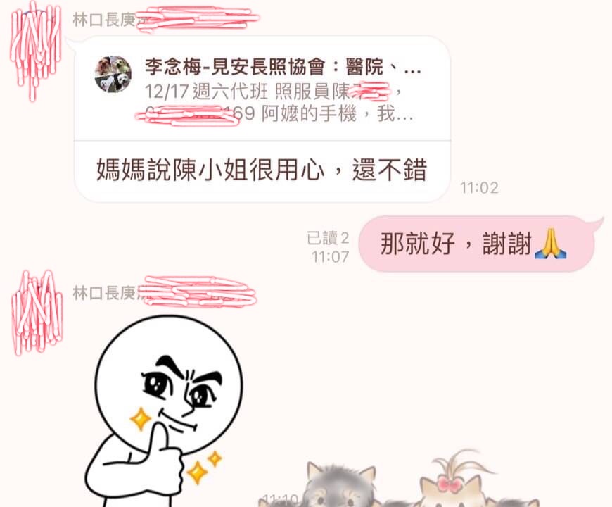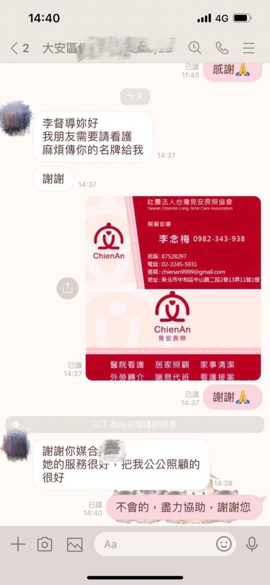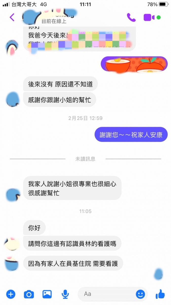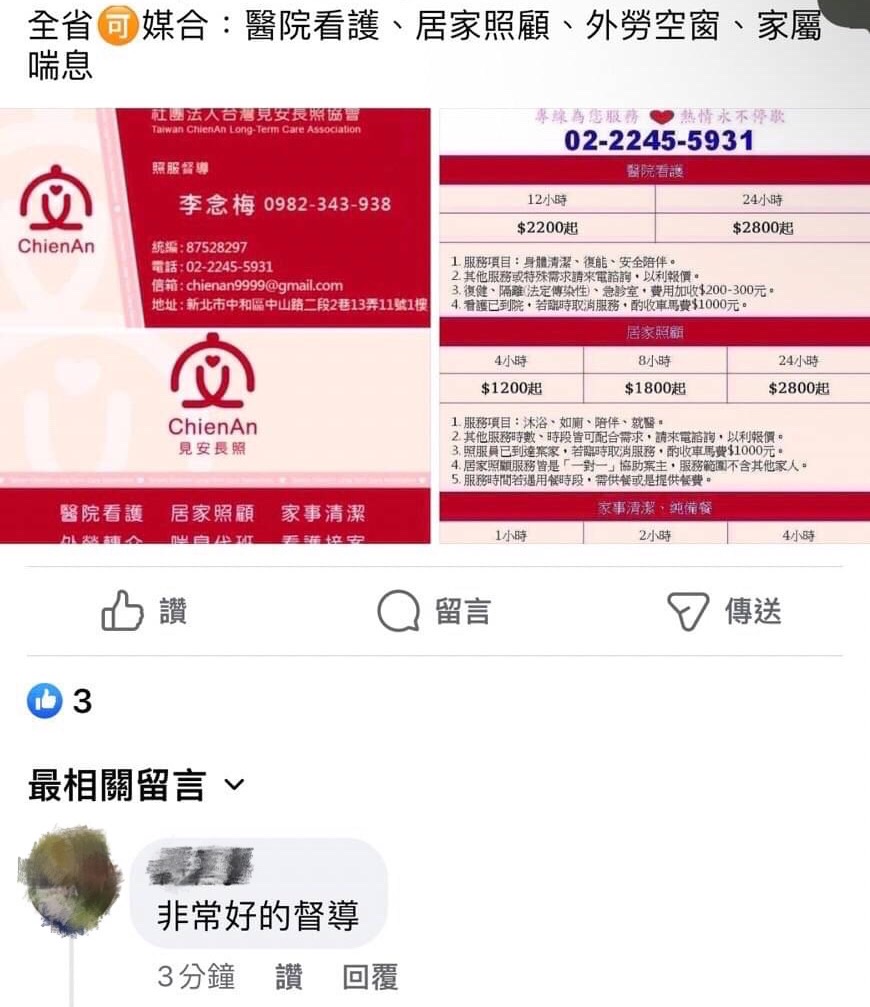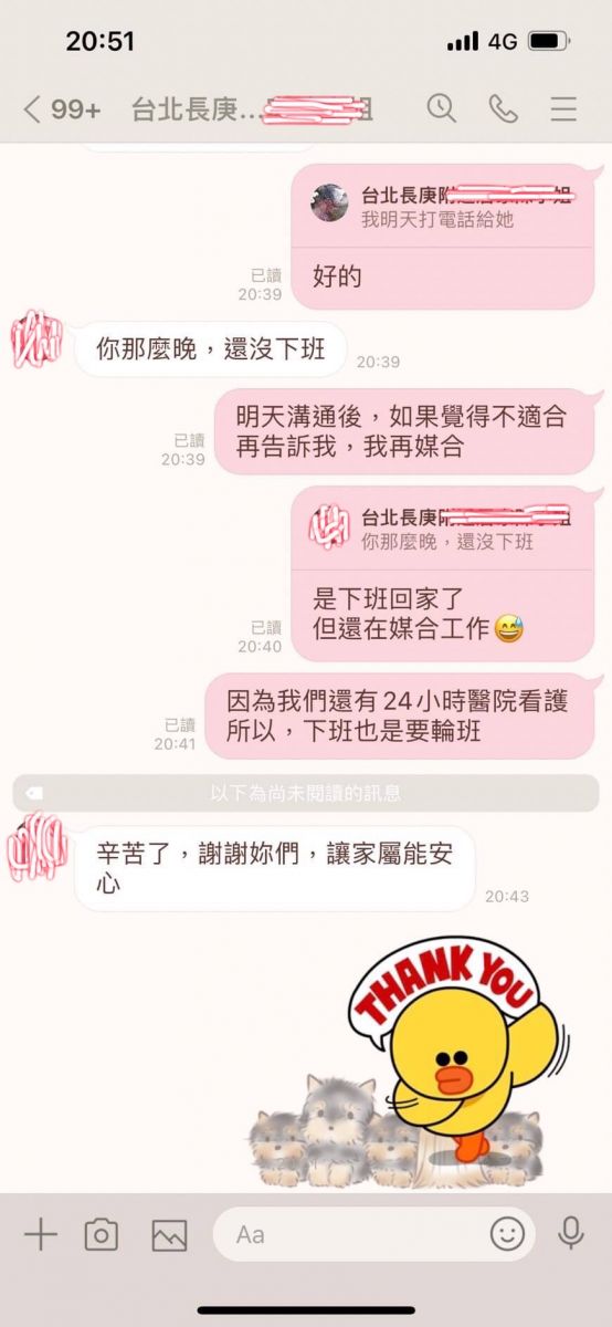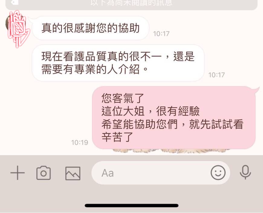 協助媒合看護人員過程有安全感、值得所有家屬信賴。