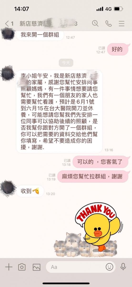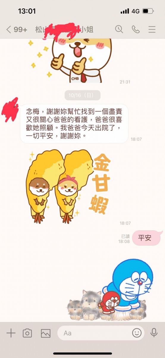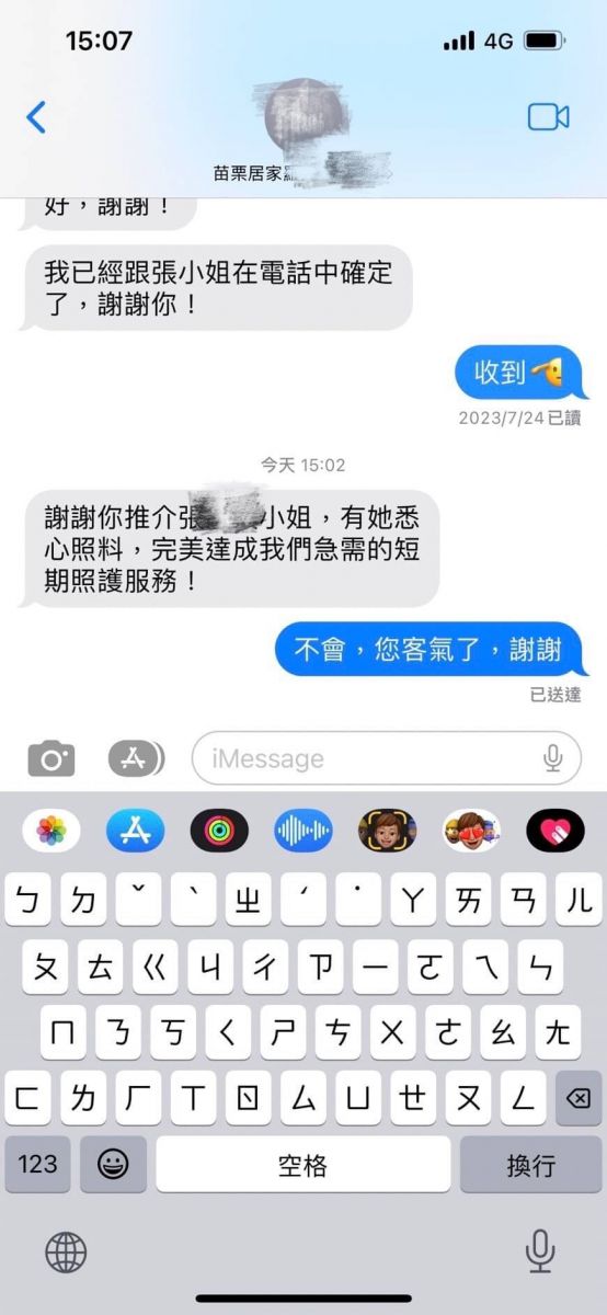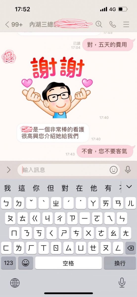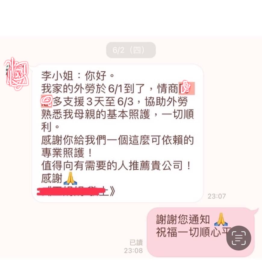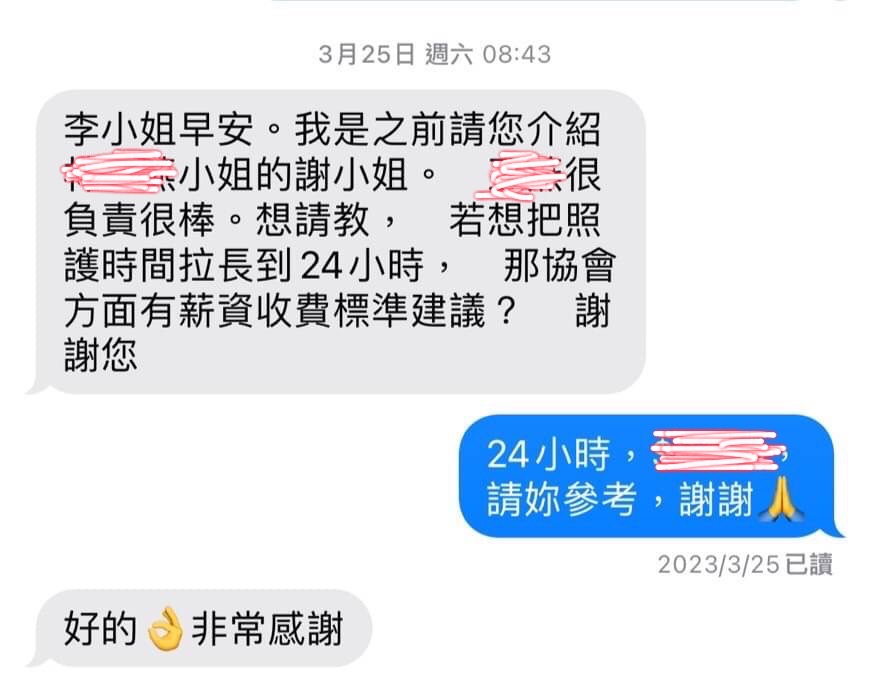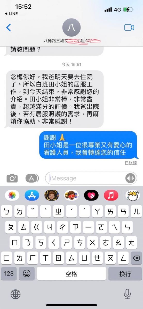 協助媒合看護人員過程有安全感、值得所有家屬信賴。