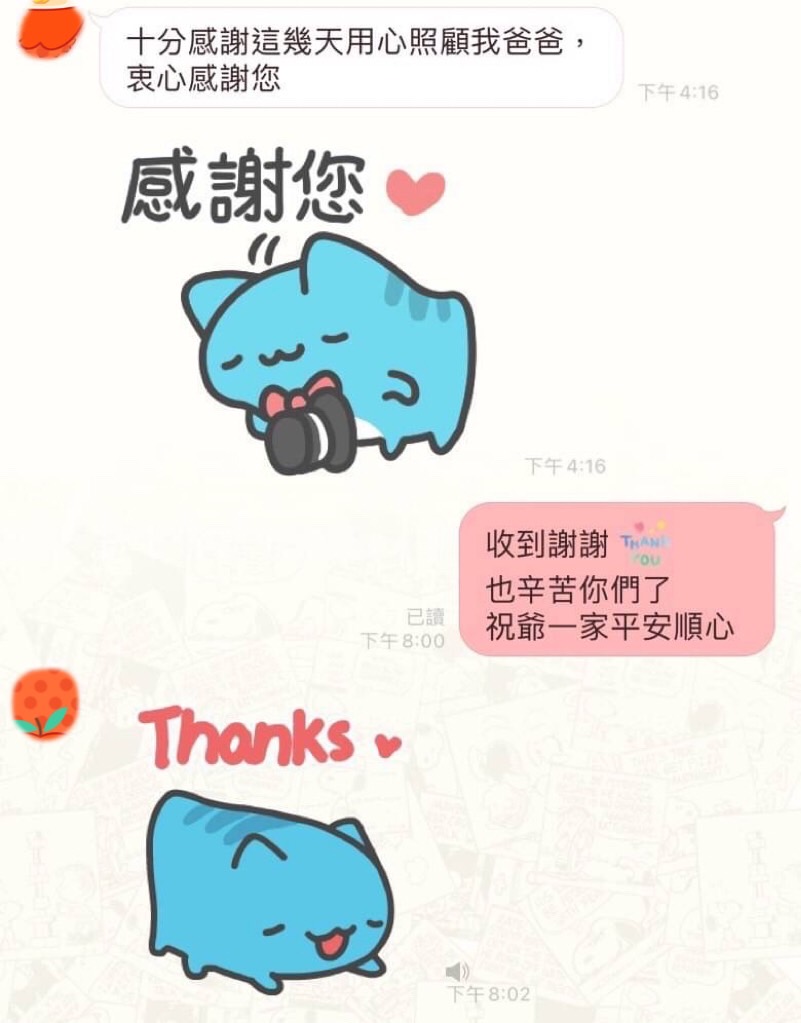 安排到盡責的照顧人員,是大家的福氣與緣份。